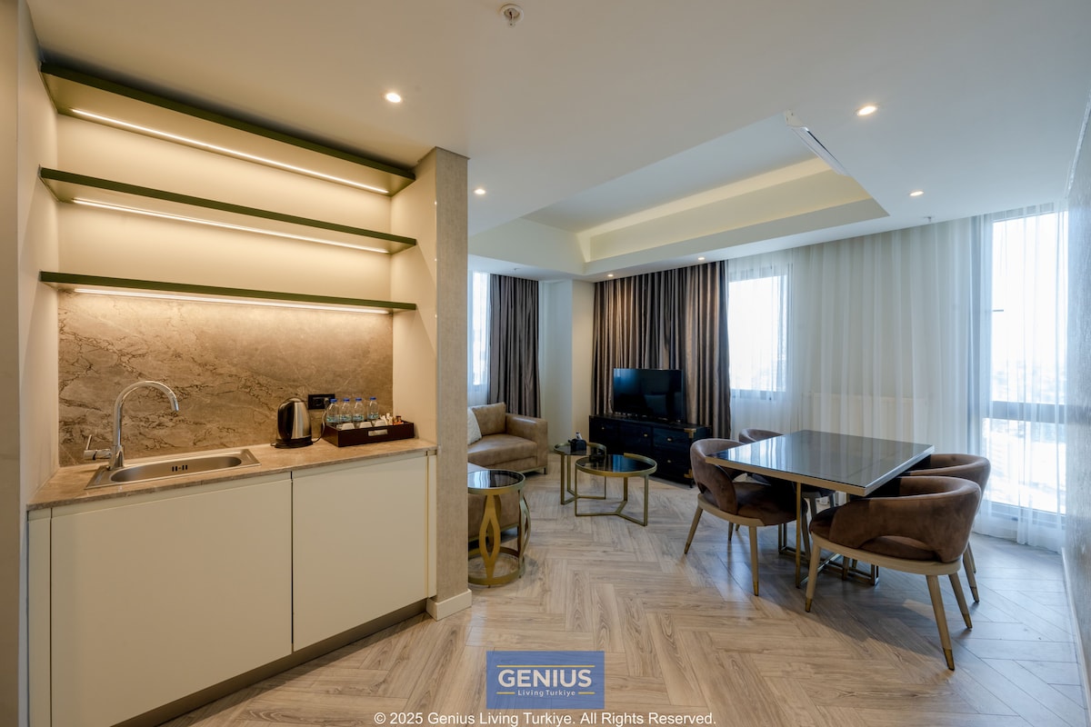 Hoş Geldiniz! 😊 Genius Travel Service olarak, tatil ya da iş gezisi amacıyla konforlu ve kaliteli bir konaklama arayan misafirlerimize 5 yıldız standartlarında rezidanslar sunmaktayız. Bu görmüş olduğunuz rezidans, İstanbul’un gelişen bölgelerinden biri olan Basın Ekspres / Güneşli lokasyonunda yer almaktadır. Modern tasarımıyla öne çıkan 2 yatak odalı daire, hem iş hem de tatil amaçlı konaklamalar için ideal bir seçenektir. Şimdiden keyifli bir konaklama geçirmenizi dileriz! ✨🛎️🛌