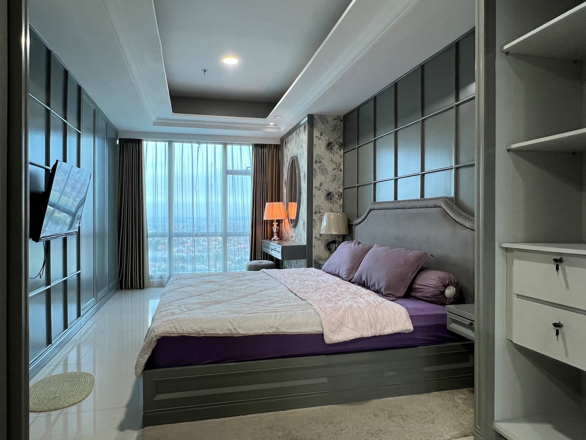 The Paneya @Benson Apartment featuring the largest studio room at Benson Tower.Modern simple luxurious accommodation in convenient location above Surabaya Pakuwon Mall. The biggest mall in Indonesia. It has direct access to Pakuwon Mall. Offer exceptional green scenery during the day and beautiful city light of West Surabaya at night. Equipped with 2 queen size bed(1pull out bed),kitchen utensils, smart TV,private bathroom,hair dryer, fridge and kettle. Free WIFI and Netflix are also available