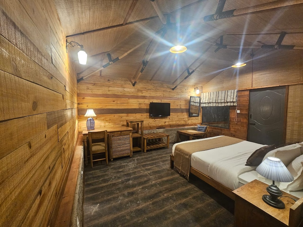 Glamoreo, just 1 hour away from Shimla. Stunning walnut wood interior, including all the furniture. Outdoor wooden bathtub, perfect for soaking in the fresh mountain air. The surrounding area is open and spacious. You can walk around, take in the scenic views, and get a feel for rural life. Everything here is organic, from food to dairy products. If you don’t feel like home-cooked meals, there are cafes and restaurants just 3–4 km away, and you can either visit them or have food delivered
