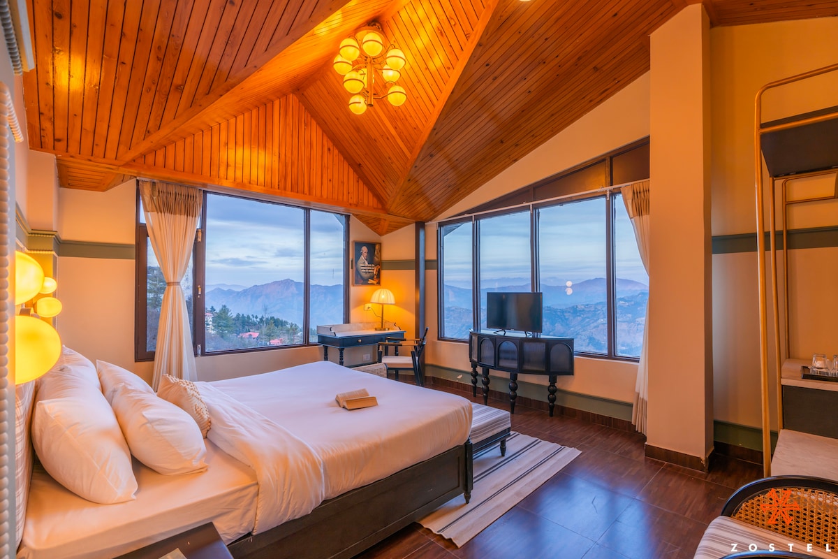 Flaunt the mountain views from this room, which comes with a king-sized bed, a work desk, a TV, & an ensuite washroom. Located in Kufri’s pine-covered hills, Zostel Kufri brings laid-back mountain comfort and India’s highest pickleball court at 9000 ft, where every rally unfolds against a stunning backdrop. Just a 45-minute drive from Shimla's main town, this hostel is perfect for exploring Shimla tourist places while enjoying raw Himalayan panoramas.