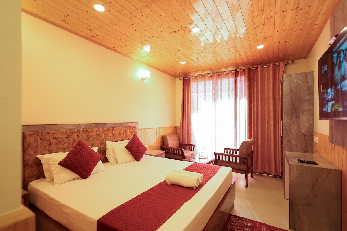 The Deluxe Room at Dak Bangla Cottages in Kufri is a perfect blend of comfort and elegance. Thoughtfully designed with modern amenities, it provides a cozy retreat for guests. The room features tasteful decor, a comfortable bed, and contemporary furnishings, creating a welcoming atmosphere. With a focus on both style and functionality, the Deluxe Room offers a delightful stay, ensuring that guests enjoy a relaxing experience in the beautiful surroundings of Kufri.