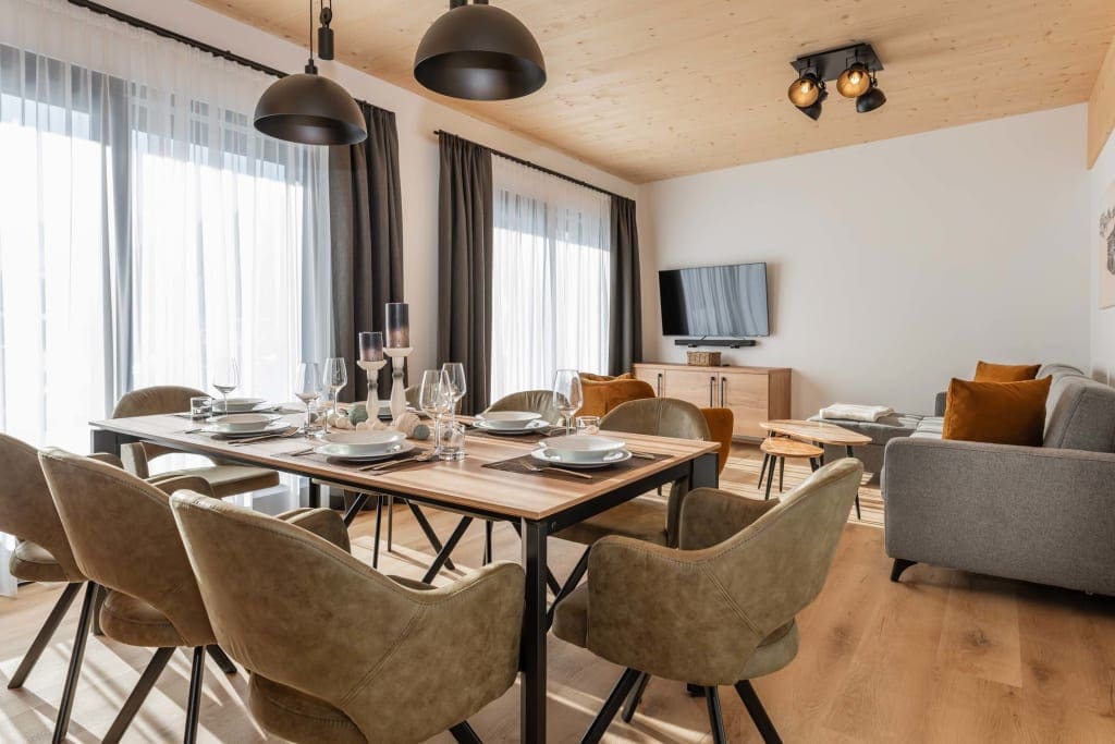Pures Design trifft alpenländische Gemütlichkeit. Große Fensterfronten garantieren einen traumhaften Ausblick auf den Schatzberg. Dieses topmoderne und brandneue Apartment bietet drei Schlafzimmer und zwei Bäder. Die siebte Person kann auf der gemütlichen Ausziehcouch ins Land der Träume eintauchen.