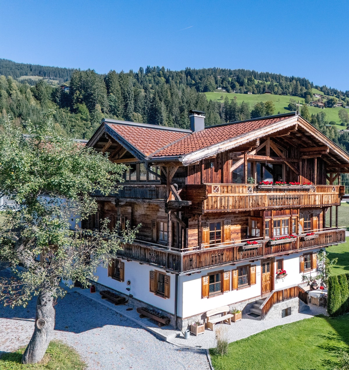 Dieses alte Bauernhaus wurde liebevoll saniert und modernisiert. Hunderte Jahre altes Holz trifft auf moderne Elemente. Dieser Ort eignet sich deshalb bestens zum Entschleunigen und Entspannen. Auch das Grundstück bietet viele Gelegenheiten dazu, sei es auf der großzügigen Rasenfläche, auf der Veranda oder einer der Terrassen. Sie haben selbstverständlich diverse Parkmöglichkeiten für Ihr Auto direkt am Haus. Das Anwesen liegt im Dorf von Oberau, eine der vier Gemeinden der Wildschönau.