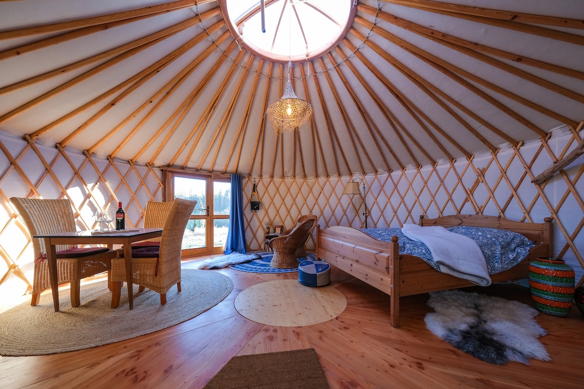 蓝色蒙古包,松树环绕(1-3人)