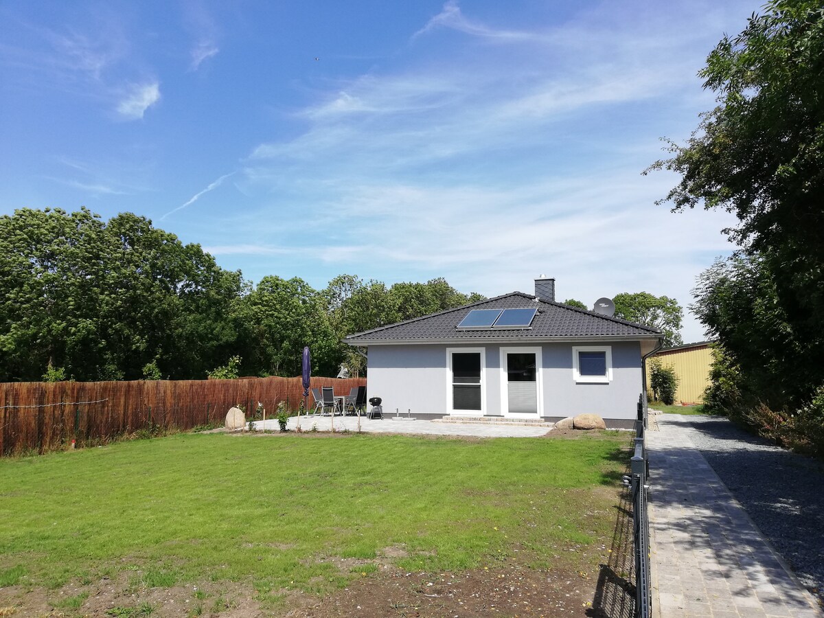Neues, gemütliches Ferienhaus mit Blick auf den Bodden und unweit der mecklenburgischen Ostseeküste! 70 qm - großzügiges Wohn- und Esszimmer mit Kamin und offener Küche. 2 Schlafzimmer, eine Schlafcouch und ein Bad mit eigener Sauna. Vollausgestatte Küche mit Zugang zur Teressa, welche zum grillen einlädt. Auch ein Lagerfeuer ist möglich. Der Bungalow ist komplett mit Fußbodenheizung ausgestattet und ein PKW-Stellplatz, auf dem Grundstück, sowie ein weiterer an der Ostsee ist, vorhanden.