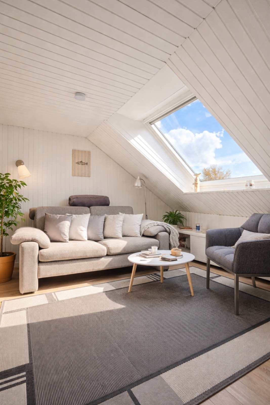 Genieße ein stilvolles Erlebnis in dieser zentral gelegenen Unterkunft. Die Wohnung befindet sich im 2OG und erstreckt sich über 2 Etagen. Das Boxspringbett befindet sich dann über dem offenen Wohnbereich in dem ausgebauten Dach. Die gemütliche Wohnung ist für zwei Personen ausgelegt, im Wohnzimmer befindet sich ein ausziehbares Sofa. lInsgesamt beträgt die Größe 34m2. Zum Markt sind es 3-5 Minuten zu Fuß und zum Hafen 15-20 Minuten Gehweg. Auf die italienische Gastro im Haus 30% Rabatt.