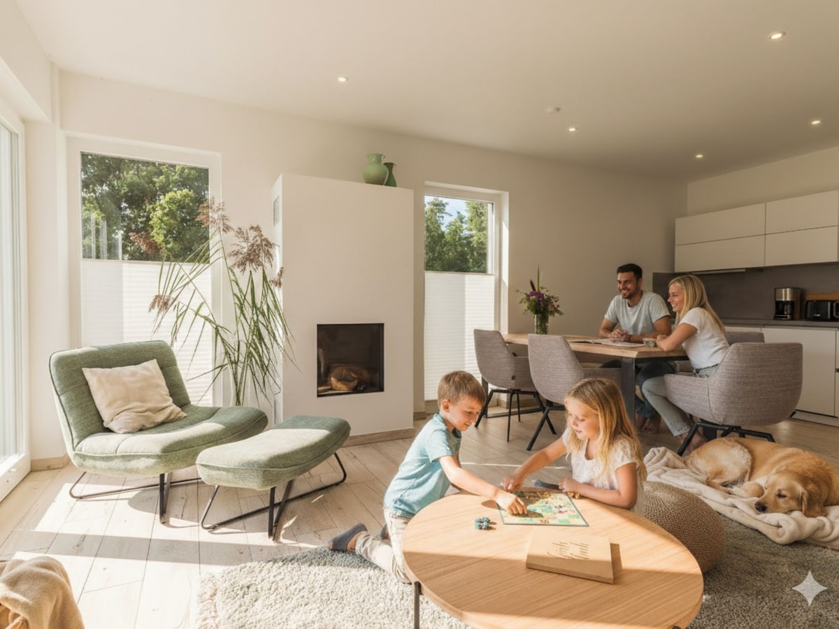 „Sonneneck“ – ein hyggeliges Holzhaus im Grünen, Teil eines Ensembles mit gemeinschaftlicher Sauna und fußläufiger Nähe zum Meer. Große Fenster öffnen den Blick in den Garten, Natur und Ruhe inklusive. Auf ca. 60 m² finden bis zu 4 Gäste (+2 Aufbettungen) Platz zum Wohlfühlen. Chillarea für Kids auf der Galerie, private Sauna-Wellnesszeiten entspannt reservierbar, kinderfreundlicher Strand in 10 min zu Fuß. Wäschepakete gegen Aufpreis buchbar, Early Check-In & Late Check-Out auf Anfrage.