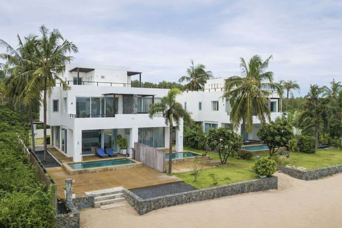 • บ้านติดทะเลที่มีพื้นที่ Outdoor สนามหญ้าหน้าบ้านกว้าง • บ้านติดหน้าหาดสวย สะอาดสงบ เล่นน้ำได้ •สระว่ายน้ำ Panorama View บนชั้น 2 ของบ้าน ชมวิวทะเลได้180 องศา • สามารถมองเห็นวิวทะเลจากห้องนอนได้เลย 1 ห้องครัว พร้อมอุปกรณ์ทำครัวครบ 1 Living room พร้อมเครื่องเสียงและคาราโอเกะ ไมค์ 2 ตัว เตาปิ้ง BBQ และโซนนั่งเอ้าท์ดอร์ มี เรือคายัค บริการฟรี * ไม่มีเครื่องล้างจาน ไม่มีเตาอบ ไม่มีเครื่องชงกาแฟ มีที่จอดรถได้อย่างสะดวกสบาย Villa Beachfront Kuiburi
