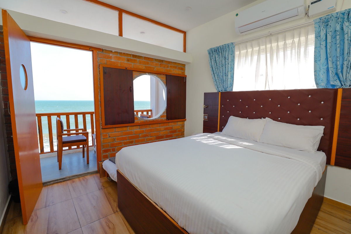 🌊 Your private beachfront studio with sea view 🏝️ Cosy 1-room studio with double bed, kitchen area, bathroom, AC, and direct beach access – ideal for 2 guests. Located on Serenity Beach, 5 km from Pondicherry. Daily cleaning, Wi-Fi, and peaceful seaside charm. ✨ A simple and unique escape – please read the full description before booking!