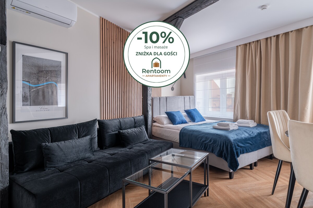 Stylish Apartment with AIR CONDITIONING in the very center of Toruń, 5 minutes walk to the Old Town. Ap 2 is located on the ground floor, fully equipped, living room with kitchenette and sofa and a separate area with a double bed, bathroom and terrace. The building has an elevator. Parking space in the undergr. garage payable PLN 40/day - payable on site. Free parking in front of the building, subject to availability. A pet add. payable PLN 20/day. Add. bedding upon prior notification + PLN 10.