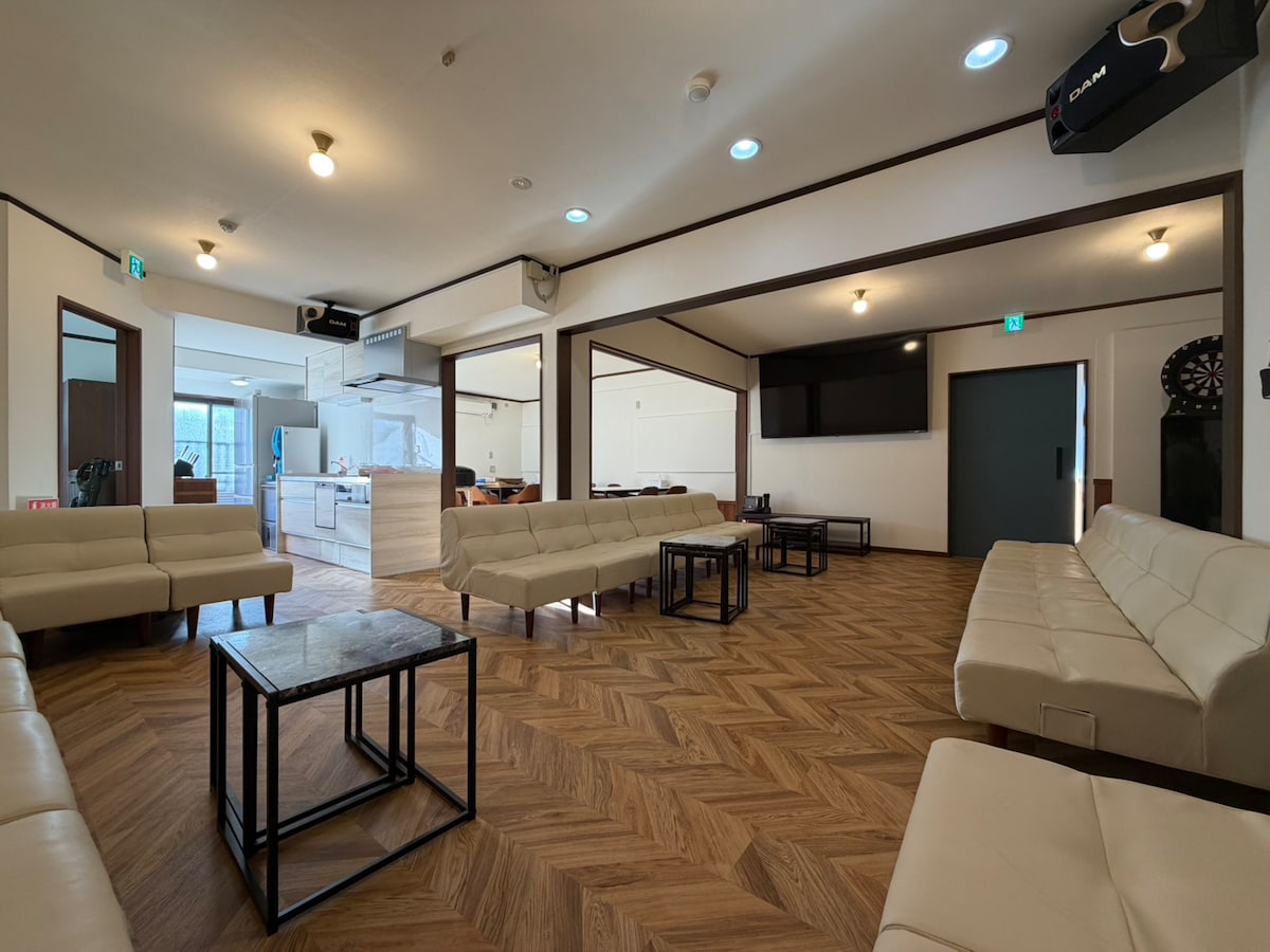 国内民泊で一番グラウンド面積?と自負しております! 立地は、まさかの片貝海岸の目の前の立地! 歩いてビーチまで直結で行くことができます。 まるまる一棟貸切! 2025年12月25日リニューアルオープン 無料駐車場10台以上可能! BBQ、サウナ、露天風呂、水風呂、カラオケライブダム、85インチ大型テレビ、 パーティや複数ファミリーでの親睦会、卒業旅行等、ゼミ旅行、サークル旅行、部旅行などの、大事な思い出作りに最適! アプリで予約人数⇒15 ペット数⇒3 など 明確にご入力下さい。 途中で人数やペット数変わる際も都度更新下さい。 子供料金などの設置はございません。 ◆最大30名宿泊可能です ※ご留意16人を超えると 17人目から一人6,500円の追加料金がかかります。 ◆ペットは、1匹一泊6,000円となります (ペット数入力欄がありますので必ずご入力下さい) 九十九里片貝海岸 まで徒歩1分 ★チェックイン15時〜、チェックアウト~10時 アーリーチェックイン或はレイトチェックアウトをご希望の場合ご連絡ください (1時間18,000円、お一人ではなく、団体の全体料金です)。