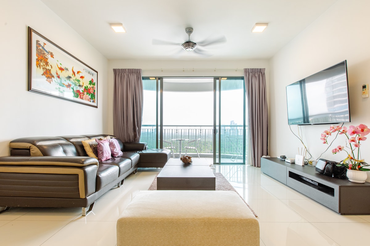 We are in the middle of city go anywhere just around 15min can reach ya ,location tampoi middle and this is Brand whole New Japanees Design for 2 Bedroom 2 Bath 5pax, you will enjoy and love it 🤗~ We have a blalcony and can enjoy the swimming pool view and the whole city view