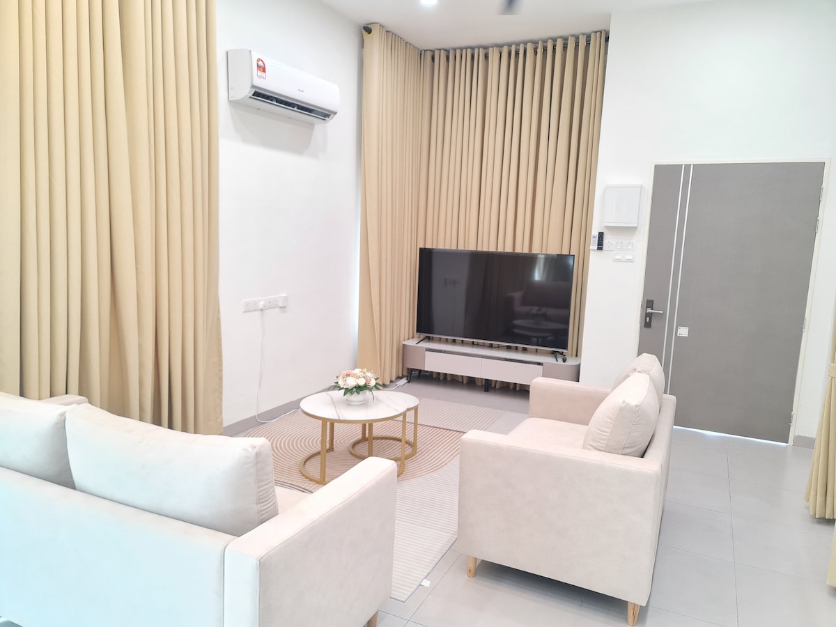 Welcome to our spacious semi-detached house located in the heart of Kulim City. Enjoy the comforts of home alongside peaceful secured gated surrounding. Bedroom 1 (Master Bedroom) 2 unit of Queen Size Bed with 1.5hp Air Conditioning + private bathroom with water heater Bedroom 2 2 unit of Super Single Bed with 1.5hp Air Conditioning Bedroom 3 1 unit of Queen Size Bed with 1.5hp Air Conditioning Modern Stylish Living Room - Living area with Air Conditioning - Smart TV with MYTV Channel