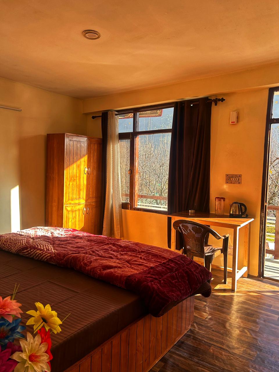 - Entire top floor - Common sitting area with heating setup(shared with host) - Co Living with a himachali family - Homely food - Transparent roof (Attached with common space). Can be used for stargazing - Balcony attached with every room - Wanderlust green garden - High Speed Internet - Two room with mezzanine floor which can accommodate four per room and one single room can accommodate two atleast - Kitchen, room heater & bonfire/tandoor are chargeable and payable at hotel directly No lifts