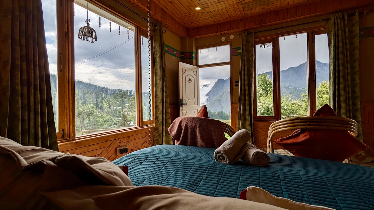 马纳利Ghar | 主卧室,带山景