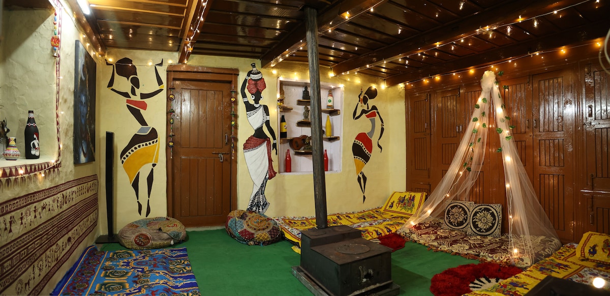 Welcome to our tranquil retreat nestled in the heart of nature, where the breathtaking beauty of the mountains meets the comfort of home. Unwind in a serene and natural setting. The natural materials of earthen room create a cozy ambiance, connecting you to the earth and enhancing the overall sense of calm with the views. The room tariff includes Wi-Fi, geyser and room. Heating systems are as per choice and chargeable , blower/heater - 200 per day , electric blanket - 400 , firewood -500
