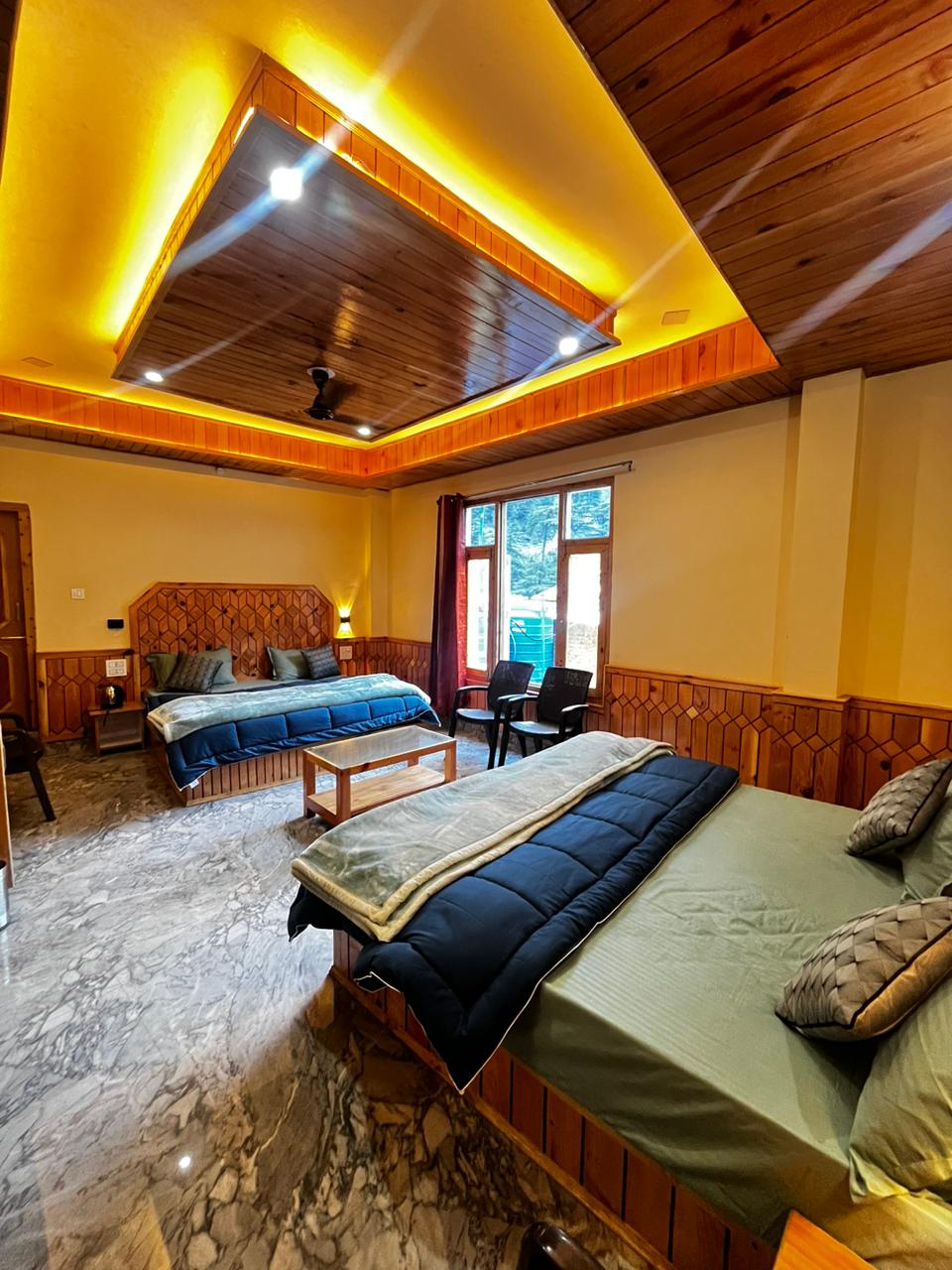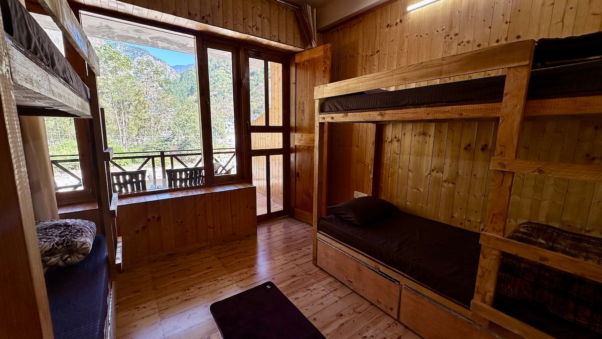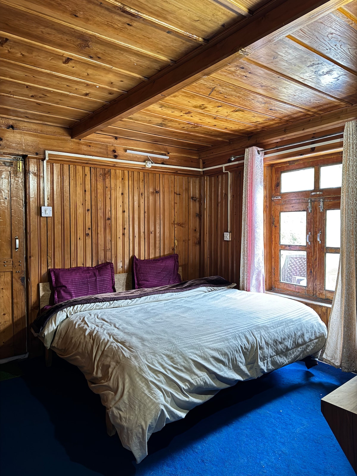 This home-stay is located at the most stunning views of manali. Walking away from hadimba temple and the nature walk. 3 kms from the mall road. 2 kms walk to the old manali bridge. Our property is 2 cottages where we have these floors of 2-3 rooms each with private balconies and beautiful outdoor seatings. This one is at the first floor. We have a in house cook where you can get anything made on order or choose from our in house menu.