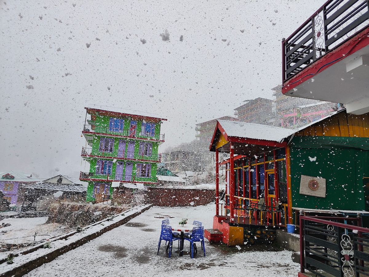 It is located right in the heart of Old Manali. We have an excellent location with a mesmerizing view of the valleys & mountains. All rooms have ample sunlight throughout the day. We have a Common space and various options to sit outside as well.