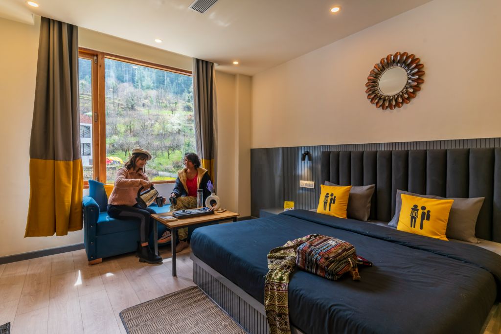 Nestled in the Parvati Valley, The Hosteller Kasol offers stunning views, with biophilic design connecting guests to nature. Eight dorms and twelve private rooms provide comfort, while two common areas and an outdoor space with a fire pit invite socializing. Perfect for weekend getaways or extended stays.Just drop by sometimes to meet your friends. Peppered with vibrant murals about the mountain life and its ecosystem, The Hosteller Kasol, Parvati Valley is nothing short of a slice of paradise.