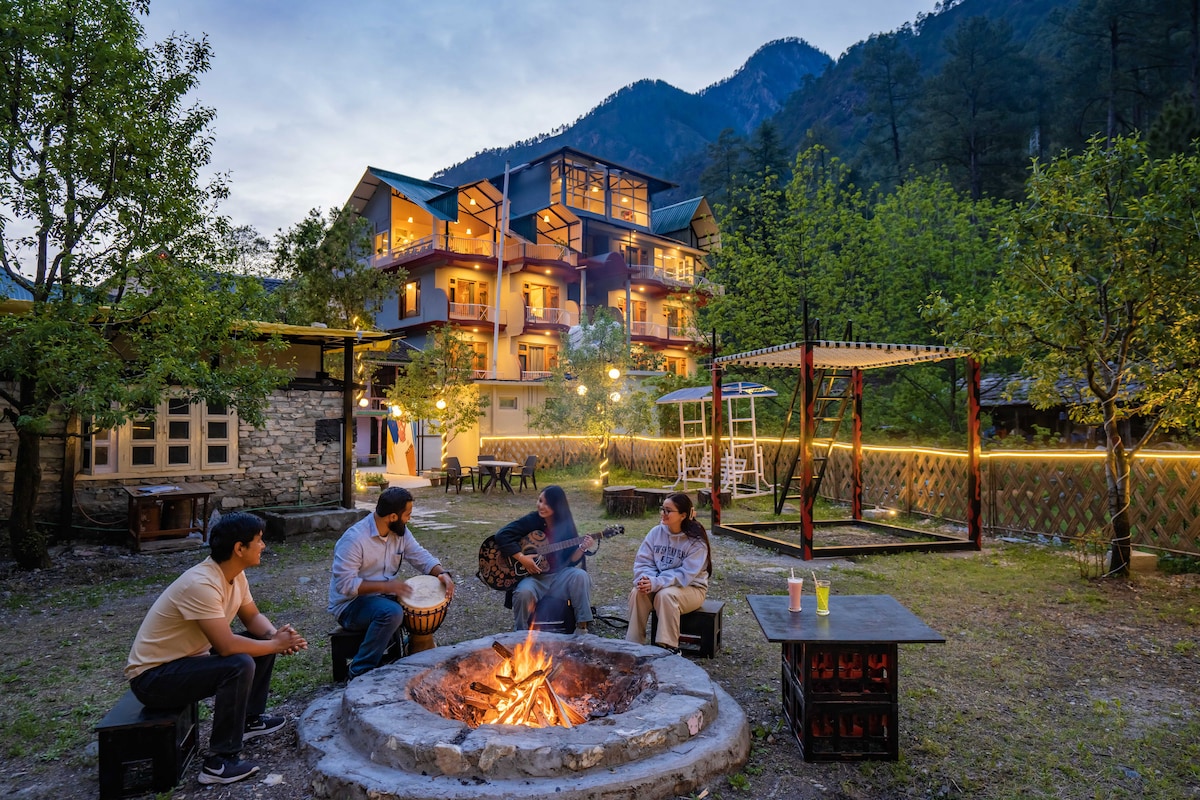 The ‘Mini Israel of India’ now has a third hostel to host you and your entire crazy squad. Set amidst the verdant and magnificent backdrop of the Parvati Valley and its surrounding mountains, our property is the perfect hostel to choose - whether you want to pop-in for the weekend or settle in the mountains for a good month or so. Constructed keeping in mind the concept of Biophilia, this hostel will make you feel at one with nature. The hostel has two magnificent common rooms to entertain you.