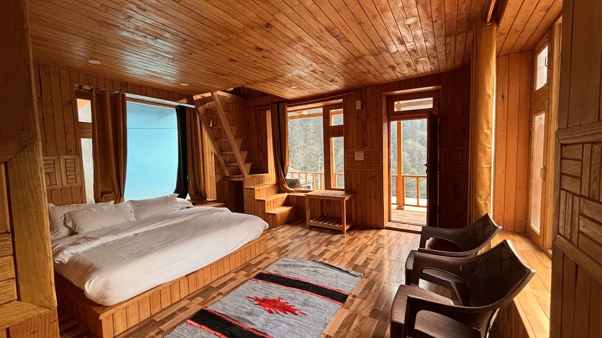 Escape to the serene Sainj Valley and unwind in our charming A Frame Duplex Cottage, nestled amidst the majestic Sainj Valley. - A spacious master bedroom with an attached washroom with modern amenities. - A secondary bedroom located upstairs, perfect for families or friends. Our cottage is situated in a peaceful location, with: - The majestic Himalayan range & explore nearby village local culture.