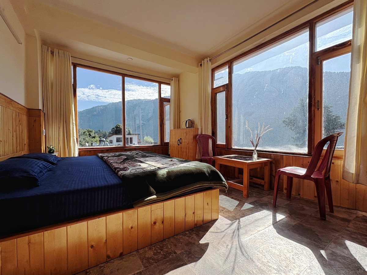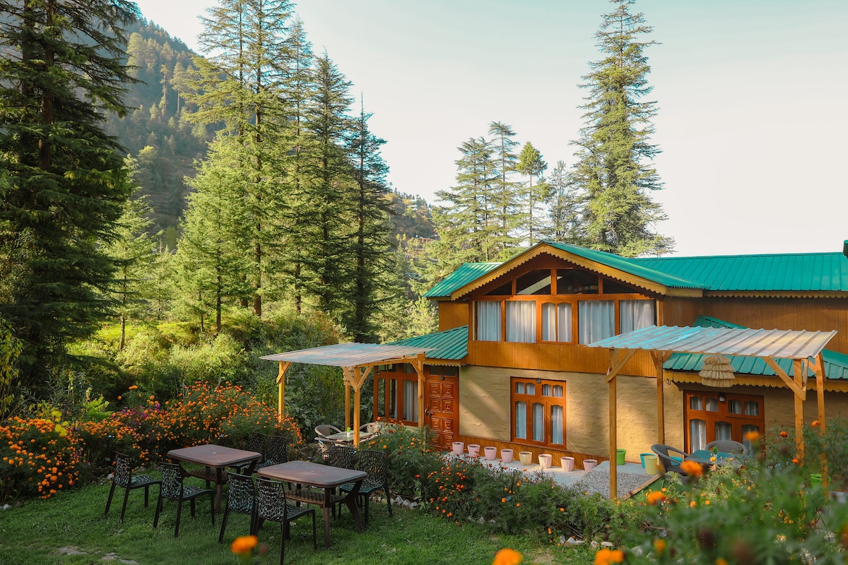"Welcome to our cozy log cabin nestled in the heart of the enchanting Jibhi, Himachal Pradesh, where every morning, you'll wake up to breathtaking views of the majestic Jalori Pass. Our log cabin-style property provides a warm and rustic ambiance that's perfectly complemented by modern amenities for your comfort. The bedroom offers an incredible view of Jalori Pass, making each morning a magical moment as you open your eyes to nature's grandeur,