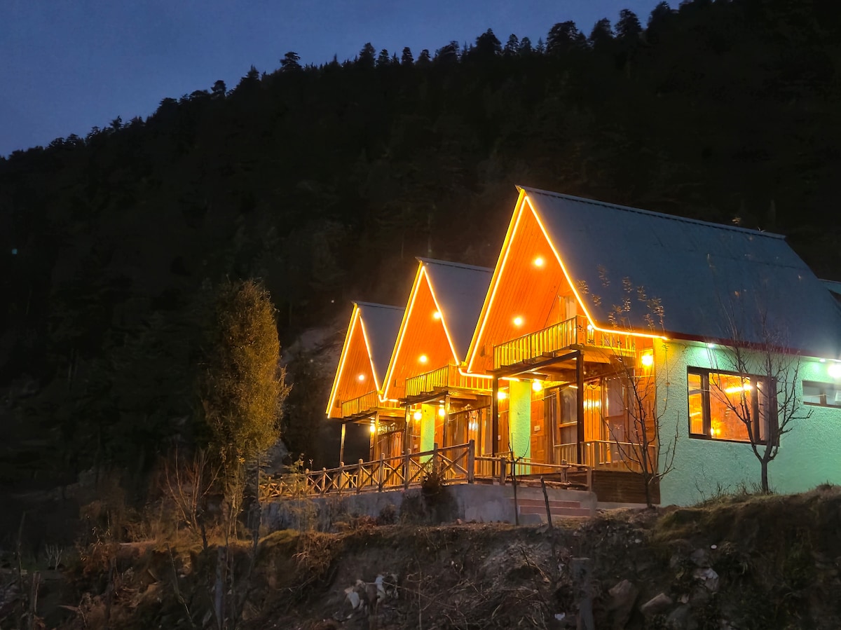 Discover Luxe Cascades Cottage, a riverside haven in Jibhi surrounded by lush forests and mountains. This cozy retreat blends rustic charm with modern comforts, offering a private balcony, fireplace, and bonfire. Wake up to the river’s soothing sounds, enjoy coffee with stunning views, and explore hiking trails and fishing spots nearby. Perfect for couples, families, or solo travelers, it’s an ideal escape for nature lovers and adventure seekers craving tranquility and unforgettable memories.