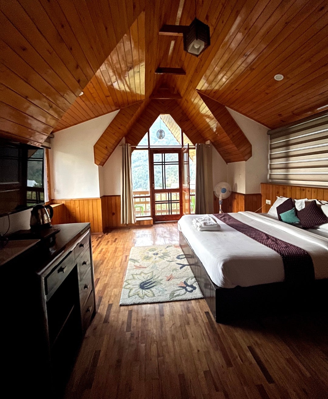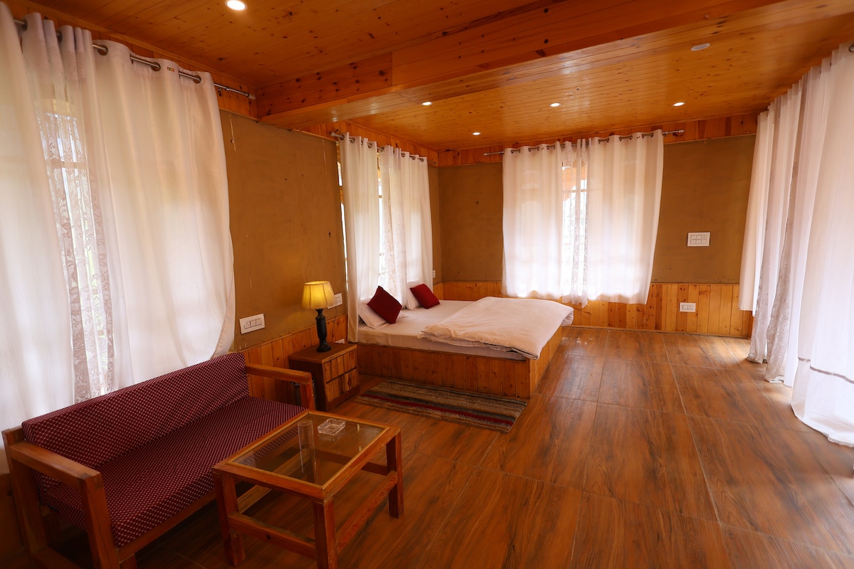 You’ll love the stylish decor of this charming place to stay. Enveloped in the lovely hills with wooden rooms, offering complete serenity & spectacular views. We are having spacious & highly comfortable Deluxe, Super deluxe & Premium category rooms. All rooms have private balcony and valley view. * Free gated parking * Multi Cuisine restaurant * High Speed Internet * Apple Orchard Garden * Bornfire Area * Private balcony with every room
