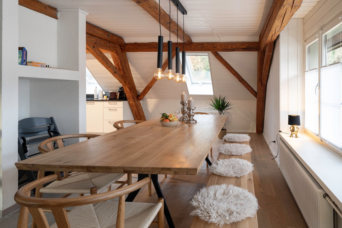 Du übernachtest im ersten Stock in unserer Einliegerwohnung – gemütlich eingerichtet und ganz für dich allein. Die Wohnung umfasst drei Zimmer mit eigener Küche und Toilette, sodass du volle Privatsphäre geniesst. Familien sind sehr willkommen. Direkt vor deinem Eingang findest du eine kleine, charmante Outdoor-Nische – wo auch ein Grill zur Verfügung steht. Für dein E-Auto steht eine Ladestation zur Verfügung. Fahrräder können sicher abgestellt werden.