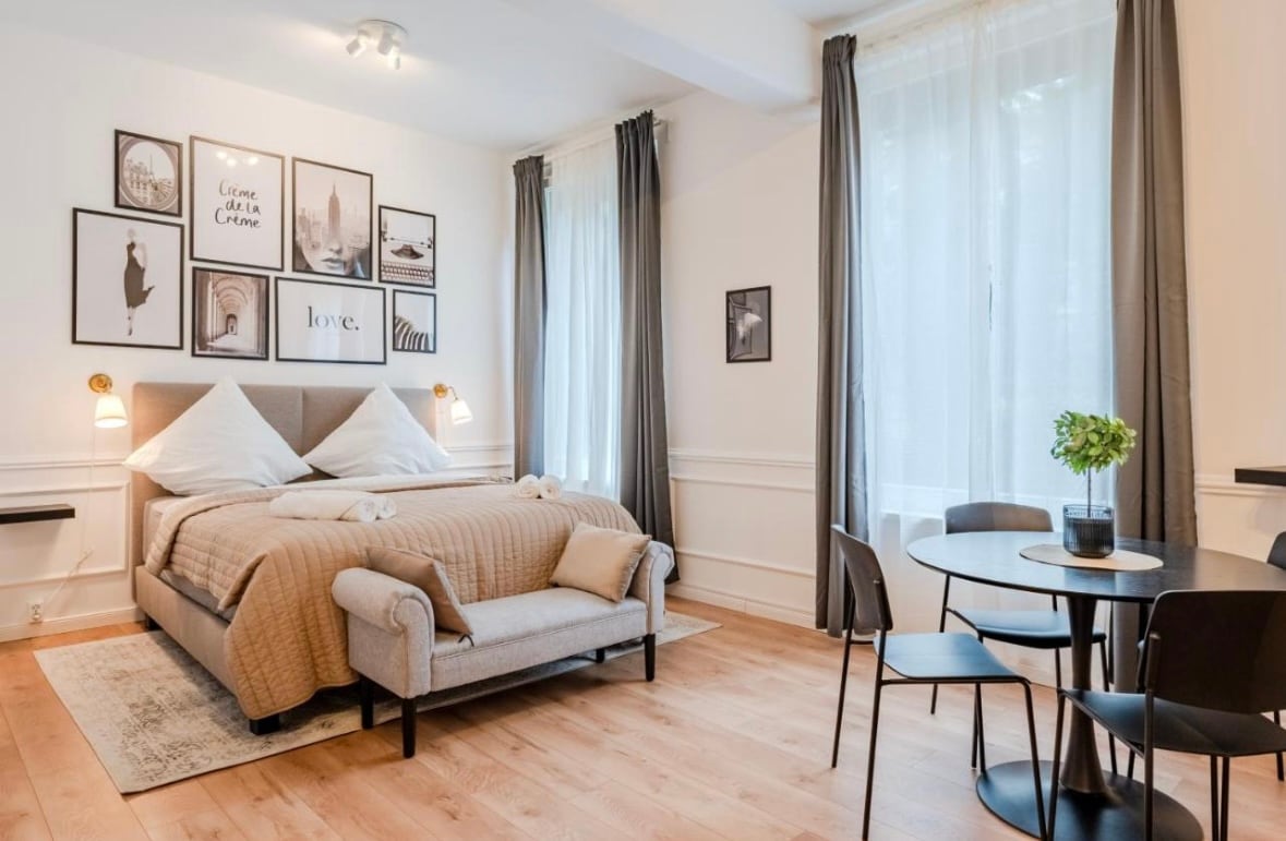 华丽。毗邻华尔纪念碑的温馨舒适的单间公寓