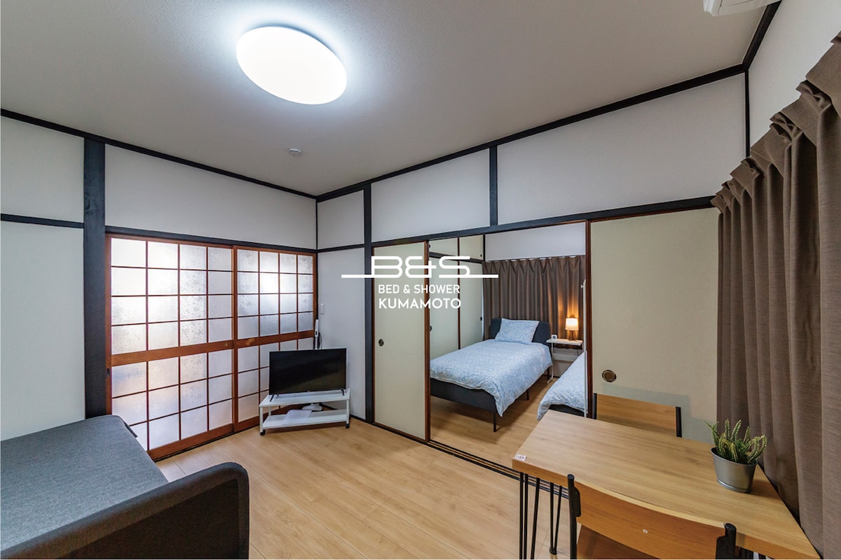 熊本駅から徒歩10分。祇園橋電停そばの古民家一軒家一棟貸しです。1Fは和室とお風呂、トイレ、洗面所。2Fが寝室、ベランダになります。電子レンジ、冷蔵庫などもあります。近所に飲食店、コンビニ、コインランドリー、スーパーもあり長期滞在にもおすすめです。 熊本駅から徒歩10分。祇園橋電停まで徒歩30秒。熊本城や市街地まで市電で15分くらいと便利な場所です。 パスポート提示のお願い 厚生労働省 日本政府は、法令に基づき、2005年4月1日から「日本国内に住所を持たない外国人」の方の宿泊に際しては、*氏名 *住所 *職業 等の記載に加えて*国籍 及び *旅券番号 の記載とパスポートの呈示及びコピーを義務付けましたので、ご理解、ご協力をお願いいたします。