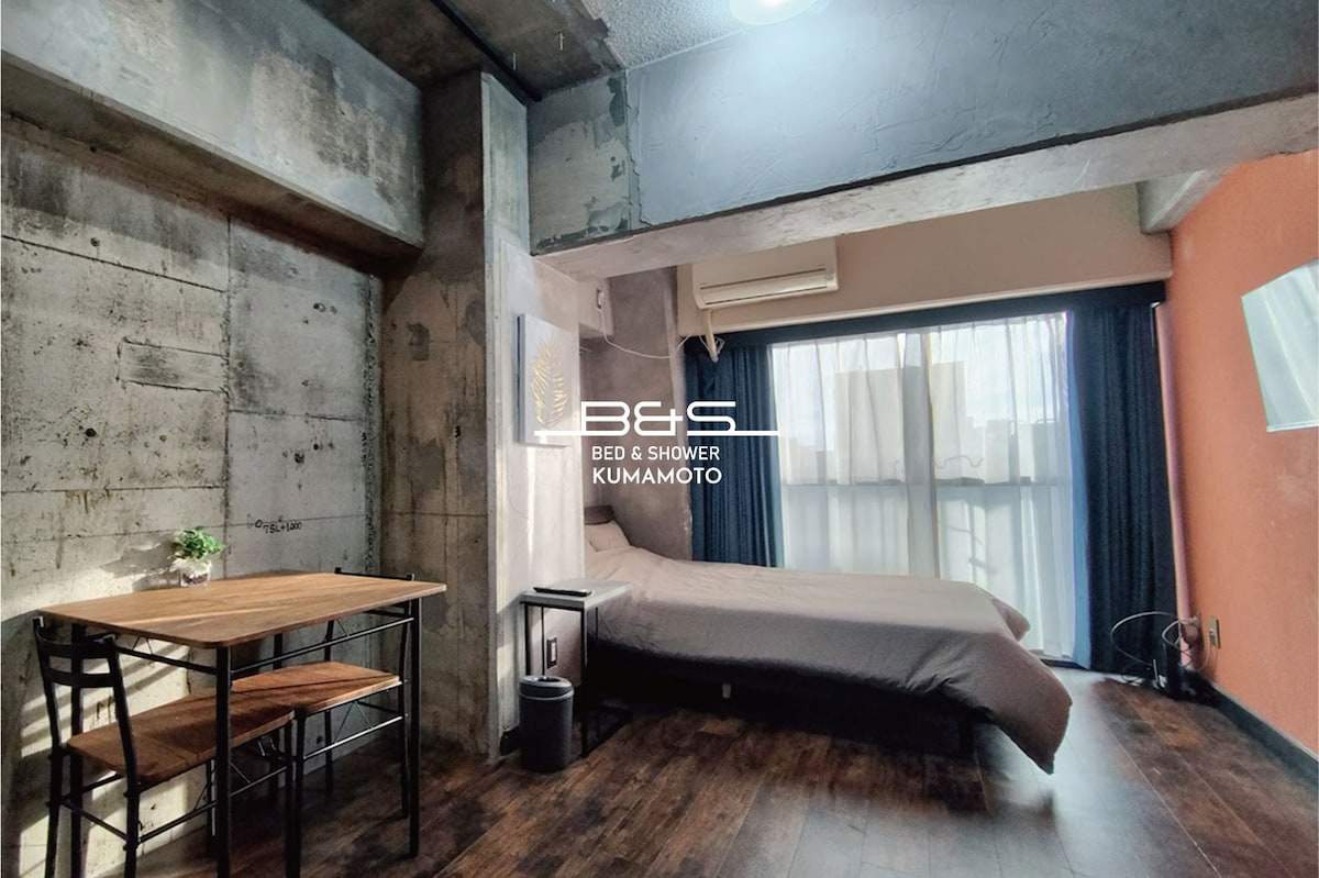 B&S KUMAMOTO MUKAEMACHI 熊本駅や熊本市繁華街から徒歩圏内の1名向けアパートですが補助ベッドを使うと小さな子供を含んだ場合最大3名様で利用可能な長期滞在向け鉄骨造ワンルームアパートメントです。すぐ近くに最大5名可能の木造アパートも3室あり最大18名まででご利用いただけます。 (テレビについての注意事項) 当施設のテレビはスマートテレビとなっており「地上デジタル放送」は映りません。インターネット経由の「Tv.(ティーバー)」や「YOUTUBE(ユーチューブ)」などはスマートテレビでご覧いただけます。長期出張などで地上デジタル放送の映るテレビが必要な場合はオプションにて24型サイズのテレビをレンタル(有料)いただくことが可能です。オプション価格につきましては予約時にお問い合わせください。