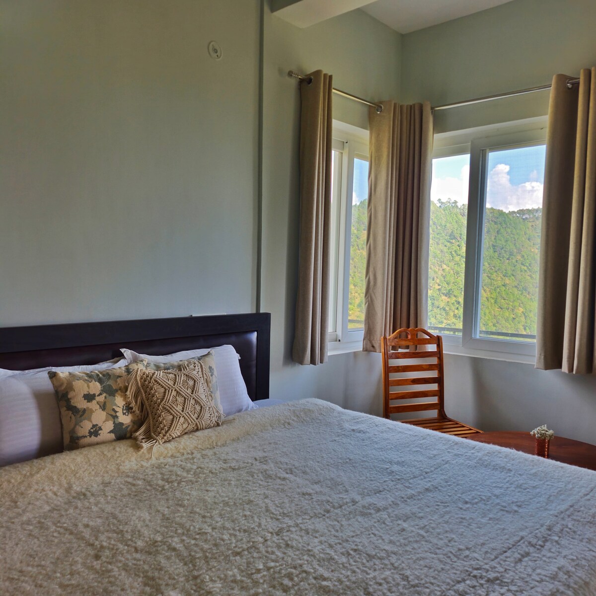 Our 2 bedroom Homestay nestled in Kumaoun Region of Uttrakahand located at Majkhali, Ranikhet ,Almora. Amidst Dense pine forest surrounded by range of Himalayas (Nanda Devi, Trishul parvat, Panchachulis) away from city hustle bustle life From heaters to speakers, this homestay has all the amenities you could ask for and more. Our challet has 2 private rooms for accommodation. Each room has a king-size double bed along with almira. The common space can also have sofa cum bed for accommodation