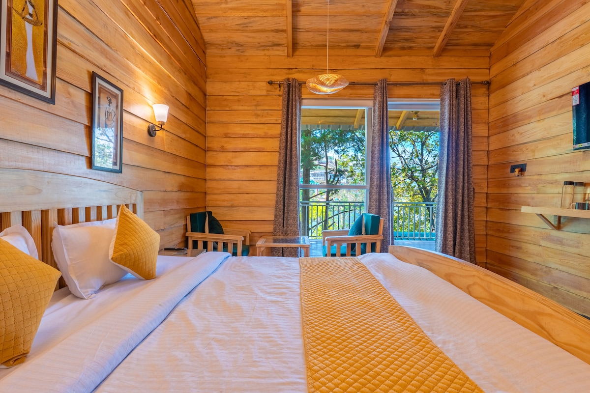 Villa'in'Woods stands as a manifestation of British architectural grace, crafted with meticulous attention to detail. This 4-Bedroom wooden cottage, embraced by Bhimtal's lush landscapes, offers a sanctuary where traditional design meets natural elegance. The place is designed to be pet-friendly, ensuring that your furry friends can also enjoy a retreat into nature. The cottage affords stunning views of the surrounding hills and lakes, offering a visual symphony of Bhimtal's serene beauty