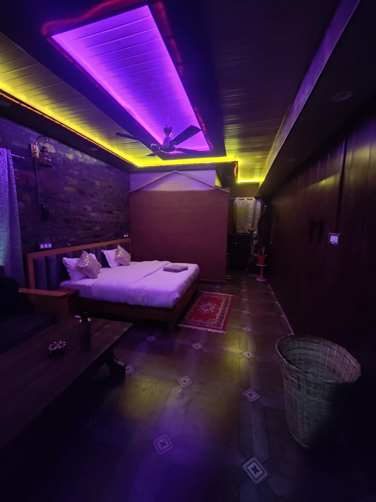 Secluded and cradled between the towering grace of Himalaya's snow-blanketed peaks and the whispering woods of Kedarnath Sanctuary, this snowy room is tucked within the serene Himalayan escape of our homestay Chaukhamba Cradle. Ideal for couples, solo travelers, or creatives seeking inspiration in nature, this private room features a comfortable double bed, aesthetic interior, mud-plastered walls, and a living room perfect for reading, lounging, or sipping a warm cup of tea.