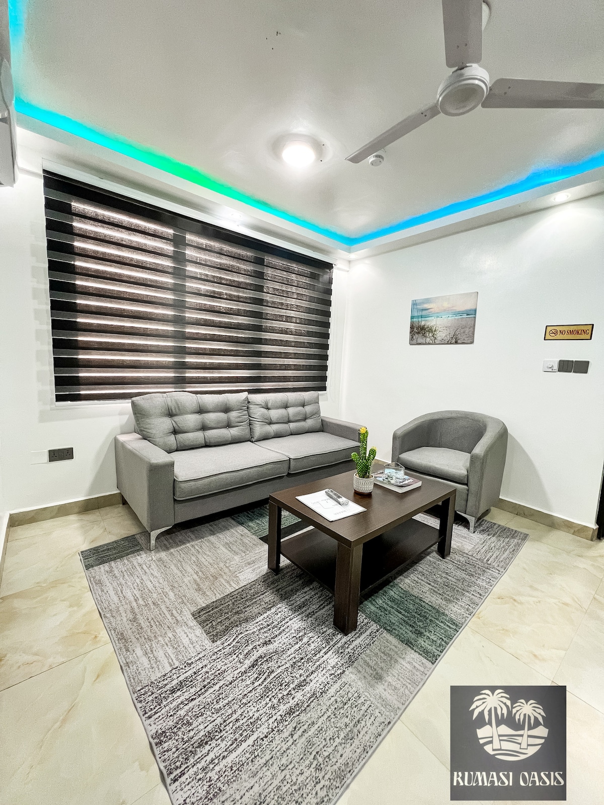 Welcome to your ideal home base for relaxation, retreat or exploration. This stylish apartment offers everything you neeed for comfortable and hassle-free stay, whether you’re traveling solo, as a couple , for work or friend baecation . Located in a safe , gated and peaceful community, the apartment is close to - 5 Minutes driver to the Semanhyia Mall - 7 minutes driver from the Kwame Nkrumah University of Science and Technology (KNUST) - 5 Minutes driver to the Ayigya Market.