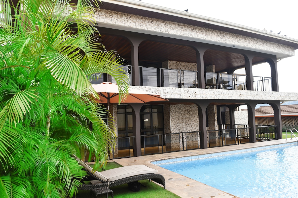 Located around the Buoho mountains and the exciting cosmopolitan city at your feet, the lodge is a one of the finest example of a modern vacation rentals.Each guest room is unique in design.We are passionate promoters of local GH attractions.The concept of this vacation rental being like a 'home away from home ' is tangible from the elegant bar,main area,lounge to kitchen.This homely atmosphere invites the most marvelous relaxation but rest assured there's always helpful member of staff on hand.