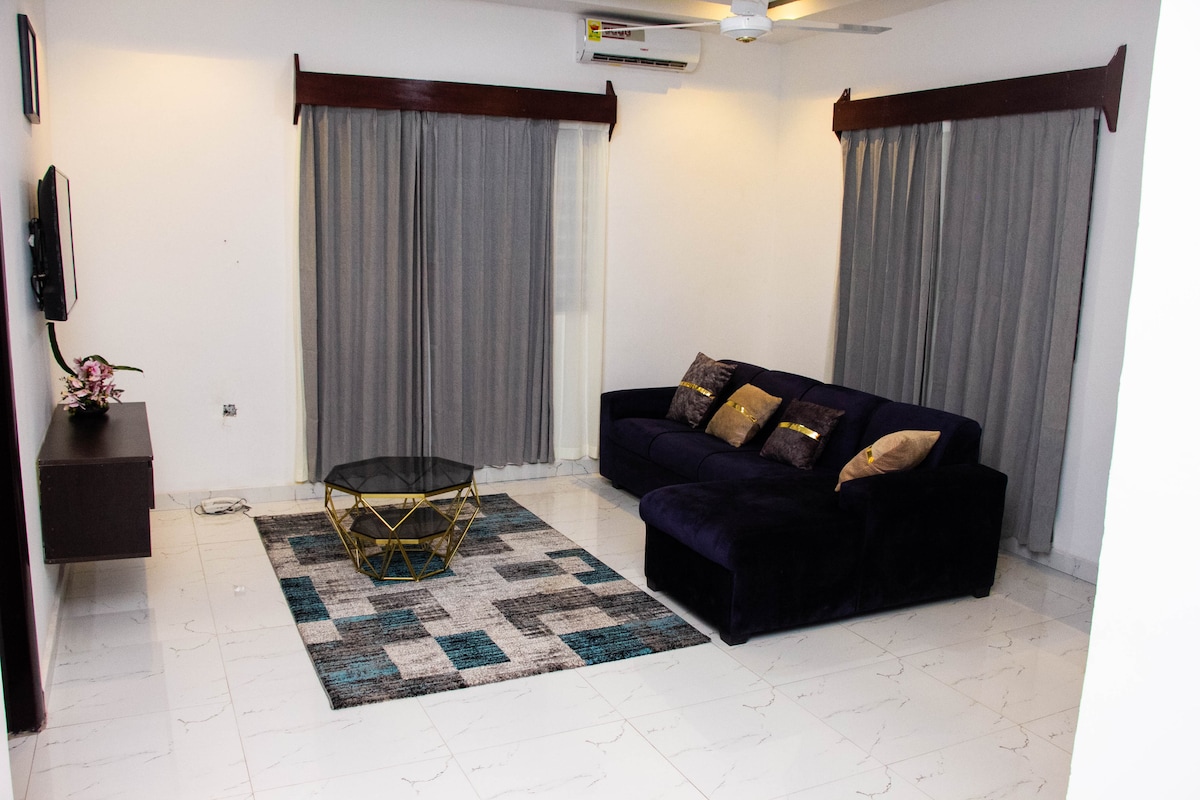 Enjoy a peaceful stay in this spacious, family-friendly 2 bedroom apartment located in a secure, gated community. This area offers a serene environment perfect for relaxation, with 24/7 security for your peace of mind. Ideal for couples or families seeking comfort, privacy, and convenience.
