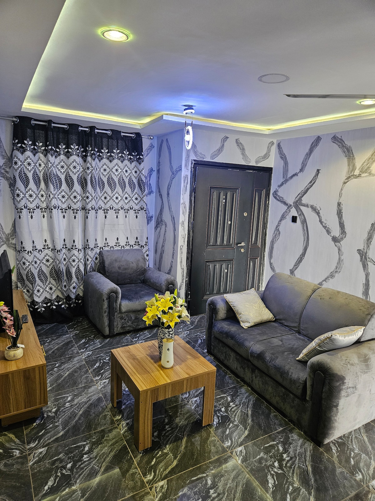 Kick back-See, Relax & Enjoy in this calm, stylish space with full Aircondition. Enjoy Full DSTV & GOTV with English Premiership league Live & Netflix. The Apartment is 9mins drive from the kumasi International Airport. The Apartment is a Gated community with supermarket, pharmacy,saloon/barbering shop,restaurants. The Apartment has its own security patrol and 2mins walk to the local police station. Its a Gated community with 24hours security.