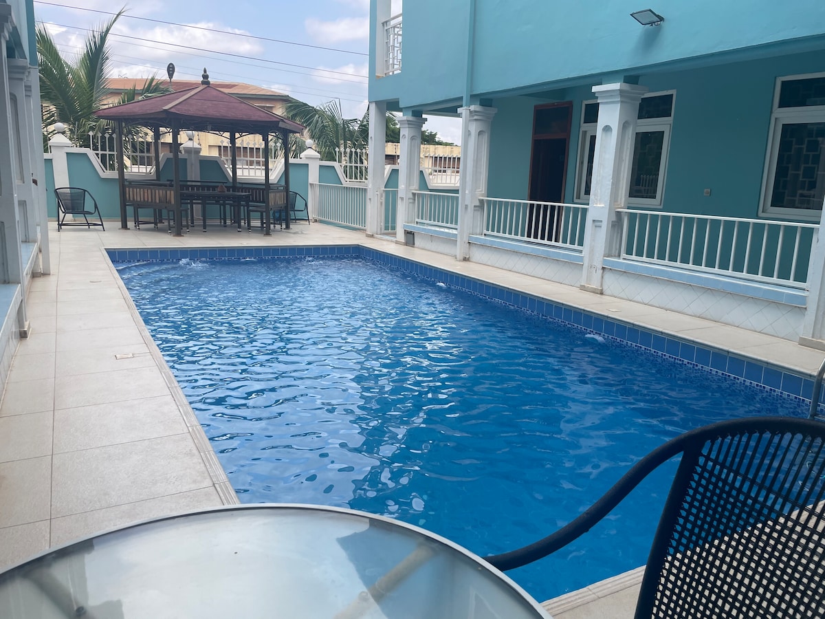 Experience ultimate comfort and connectivity with high-speed Starlink internet and a Firestick for your entertainment. This spacious, self-enclosed 2-bedroom apartment features a fully-equipped kitchen, cozy living/dining area, and modern bath. Recognized in Airbnb’s Awesome Pools category, our property also offers a gym, standby generator, onsite well, and 24/7 security with an electric fence. Guests love our caring onsite managers and dedicated staff who ensure an unforgettable stay!