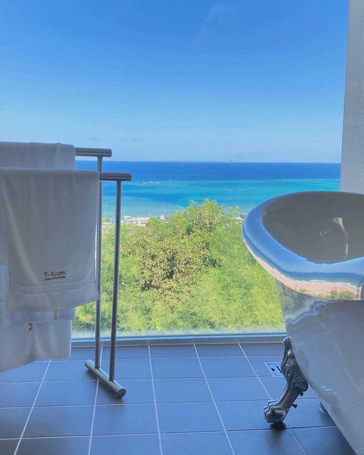 「瀨底山水❀藍之間」浴池的风景!在露天浴池中放松身心,眼前就是広大的Sesoko海域