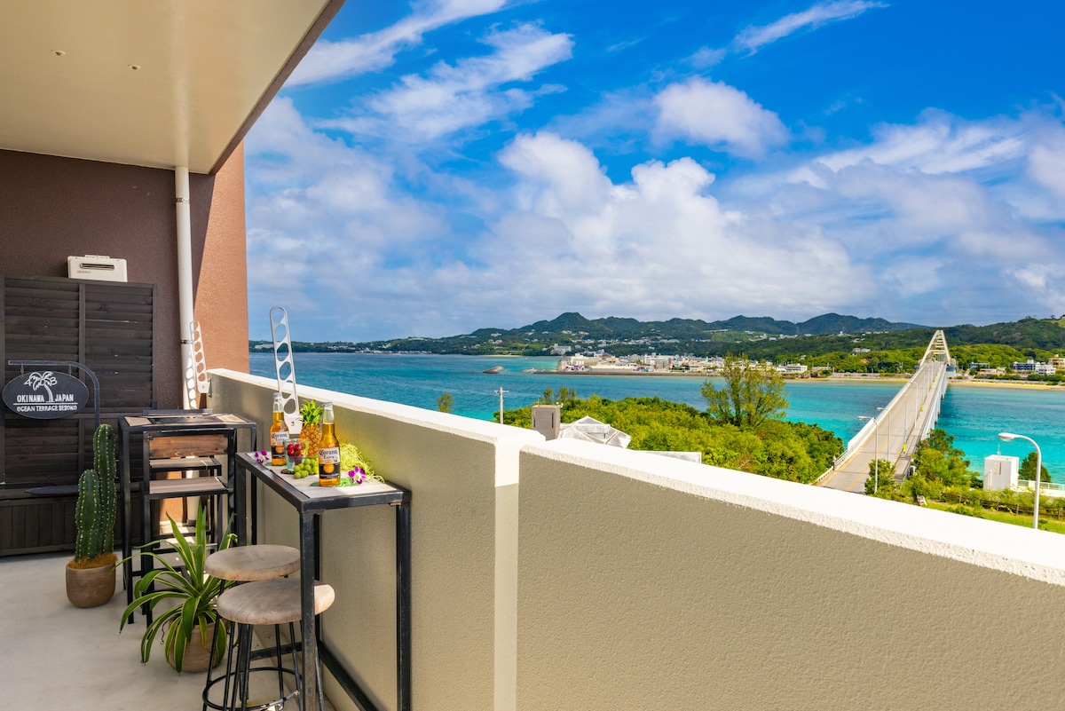 340度オーシャンビューの崖の上に立つ2022年9月新築の一軒家。 約100平米のすべての部屋がオーシャンビュー。お客様の使用可能エリアは2階の宿泊施設と、3階屋上のバーベキューテラスです。 各部屋に50インチ以上のテレビ、リビングには4Kプロジェクターと大型のスクリーンがあり、映画鑑賞も可能です。 外階段からつながる屋上にはバーベキューテラスがあり、サンライズも、日中のオーシャンビューも、夕方のサンライズも、夜の夜景と星空、月も楽しめます。海や自然の景色に癒されます。 屋上テラスにはトイレが完備されており、キッチンスペース、洗い場もございます。コンセントは8つ有り、IHを使った調理なども可能です。 2つある寝室には、ダブルベッドが2つずつ用意されており、最大8名様の宿泊が可能。 リビングにあるソファーにもシングルベッドサイズのスペース有り。 カップルでも、ご夫婦でも、ご家族でも、3世代のご旅行でもお勧めです。 周りはとても静かで、夜は虫の音色、フクロウの声、耳を澄ませば波の音なども聞こえてきます。 車で10分の場所に海中道路などがあり、マリンスポーツの拠点としてもお勧めです。
