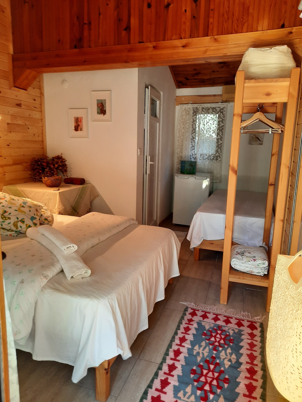 Genis ve huzurlu bir bahce icinde temiz ve rahat odalar. Iki odamiz 2 kisilik, bir odamiz 3 kisilik ve bir diger odamiz da 4 kisiliktir.