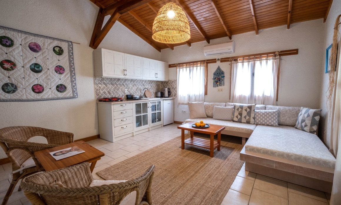 Mavi Ev, Kimera Lounge Boutique Hotel’in bünyesinde, portakal ağaçları ve begonvillerin arasında taş bir ev. Kendi mutfağıyla bağımsız bir konaklama sunarken, Kimera’nın kahvaltı, havuz, plaj ve spa imkanlarından yararlanabilirsiniz. Doğayla iç içe, konforlu ve evcil hayvan dostu bir ortam.
