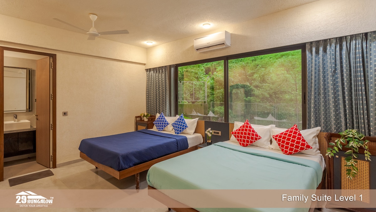 family room with 2 double beds attached washroom, common swimming pool, dinning area, Kids play area and parking