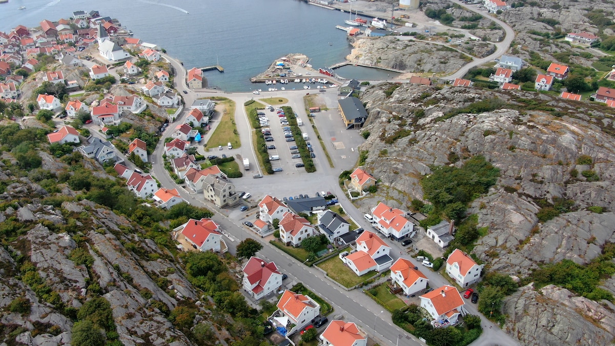 Här bor ni i en fräsch lägenhet mitt i Skärhamns hamn med båttrafik, restauranger och nöjen ett stenkast från dörren. I lägenheten njuter ni både av havsutsikt och kvällssol. Boendet är på markplan med egen ingång och erbjuder ett stort vardagsrum med avskild sovdel, stort kök och badrum. I vardagsrummet finns även en bäddsoffa för två personer.