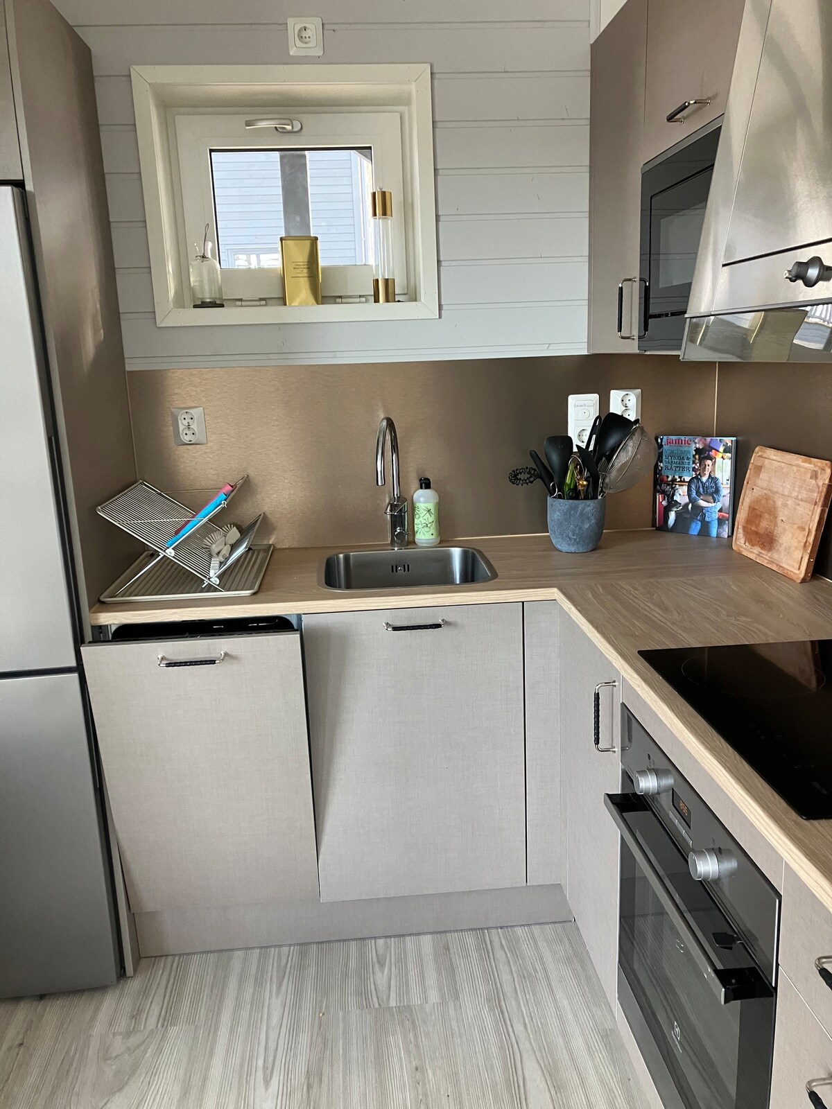 40 m2 litet hus med mysigt sovloft. Byggt 2019 I huset finns också en härlig massagestol som givetvis kan nyttjas obegränsat. Fullt utrustat kök med diskmaskin och kyl (ej frys) Finns behov av tvättmaskin eller frys så kan det ordnas i huvudhuset. Sängen är bäddad och handdukar/badlakan och morgonrockar finns för er. Nespressomaskin och kapslar och te ingår i priset Tv och wifi finns Elbil kan laddas hos oss till självkostnadspris. Swish and grab för Kyld dryck och en snackslåda.