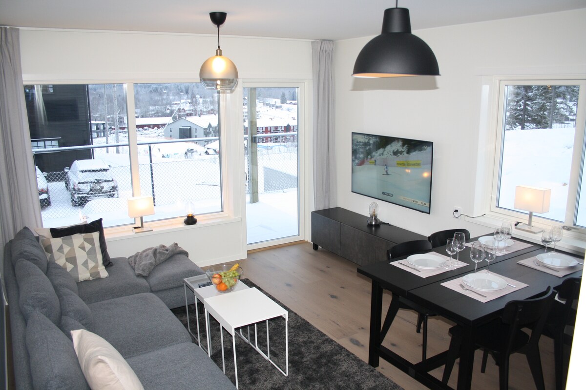 新建公寓,带泳池,距离Lugnet 800米