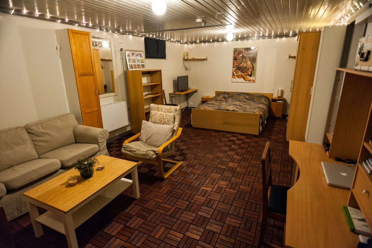 Nice and cozy apartment with its own entrance in the villa. Perfect location between city and Lugnet. With a walking distance of about 5 minutes, you are at Lugnet, the hospital or in the city.