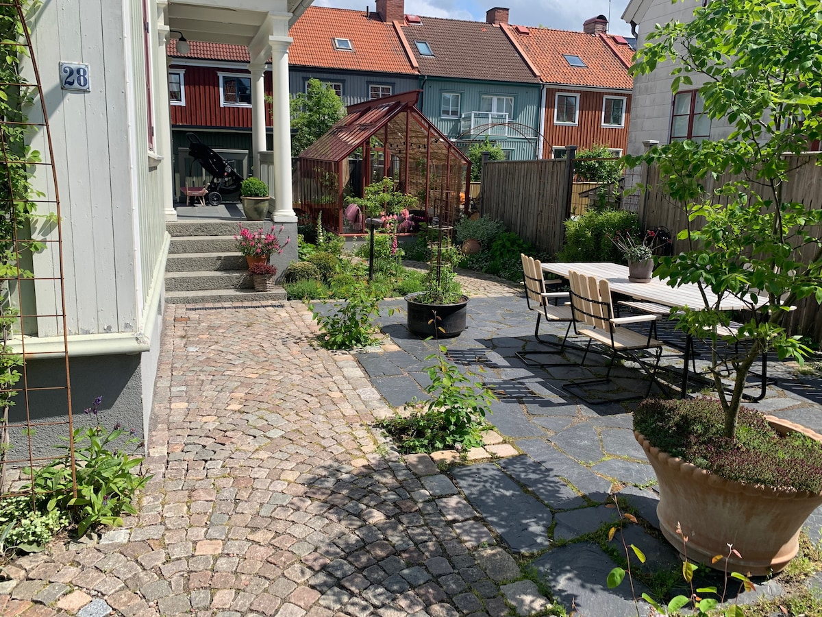 Located in a calm but central location, close to parks, restaurants, a nice forest, a lovely playground, the sea/archipelago, a kids' swimming pool and the city centre and much more. Short tram trips take you to the city centre or the archipelago. The tram station and supermarket is around the corner of the house and the beautiful park Slottskogen is only 5 minutes walk from the house. Perfect for familys, travelers or just happy people. Welcome!